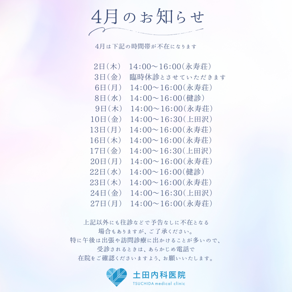 4月の予定のお知らせ